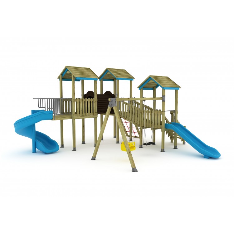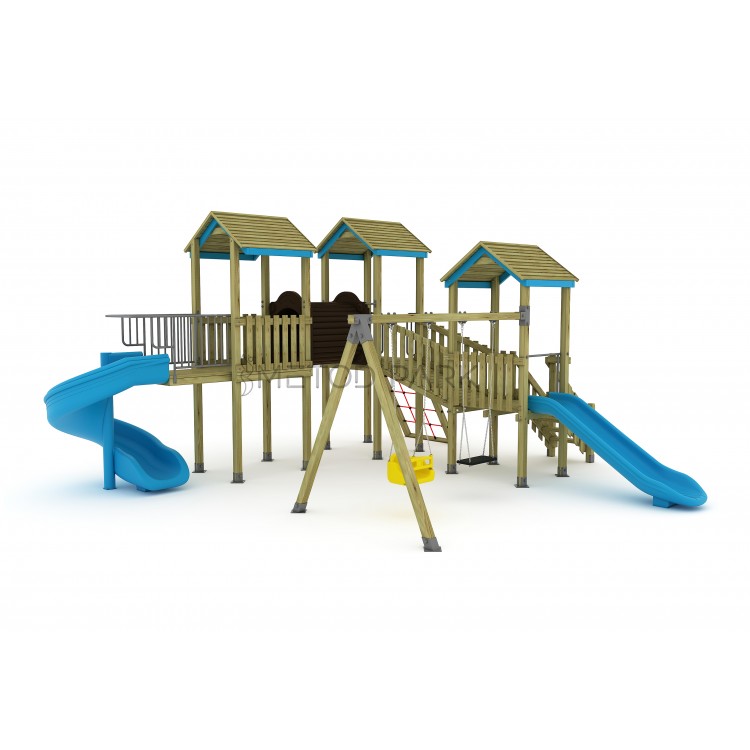 Ahşap, polietilen, hdpe, ip halat ve metal malzemelerden oluşur. Metal aksamlar açık hava koşullarına dayanıklı olacak şekilde kumlama yapılarak, galvaniz, polizing astar veya kataforez kaplanarak üzerine elektrostatik toz boya uygulanır. Polietilen parçalar renkli elektriklenmeyi önleyecek anti-statik özellikli ve sağlığa zararsız malzemeden üretilmiştir. Ahşap parçalarda, emprenyelenmiş 1. Sınıf malzeme kullanılır .