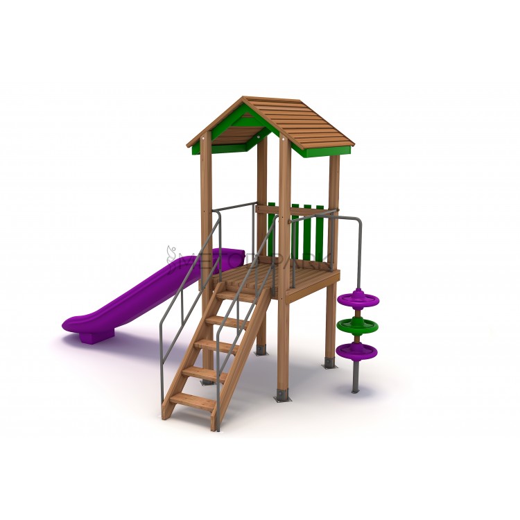 Ahşap, polietilen, hdpe, ip halat ve metal malzemelerden oluşur. Metal aksamlar açık hava koşullarına dayanıklı olacak şekilde kumlama yapılarak, galvaniz, polizing astar veya kataforez kaplanarak üzerine elektrostatik toz boya uygulanır. Polietilen parçalar renkli elektriklenmeyi önleyecek anti-statik özellikli ve sağlığa zararsız malzemeden üretilmiştir. Ahşap parçalarda, emprenyelenmiş 1. Sınıf malzeme kullanılır .